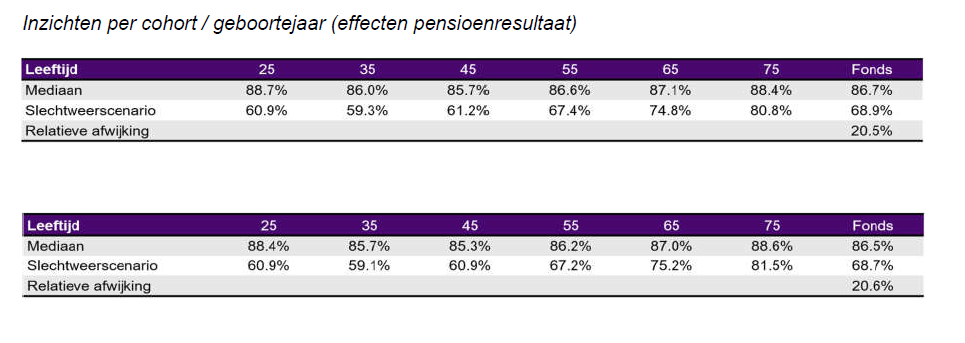 - De jongere actieve deelnemer heeft minder voordeel van deze verhoging dan de oudere deelnemers en de personen die al pensioen ontvangen. Dit nadeel is kleiner, dan het voordeel voor de oudere deelnemers en de personen die al pensioen ontvangen. Deze kleine onevenwichtigheid neemt het bestuur mee in toekomstige besluiten om het indien mogelijk recht te trekken.